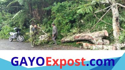 Tamkpal Akses Jalan Takengon–Jagong Sempat Terganggu Akibat Pohon Tumbang. (Ist) Aceh Tengah, (…