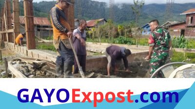 Teks foto:Babinsa Koramil Jagong Gelar Karya Bakti Bersama Warga di Desa Gegarang. (Ist) TAKENGON…