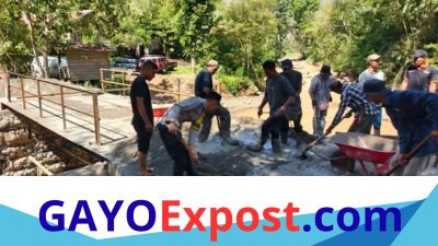 Tampal Polisi dan Warga Kebut Jembatan Darurat, Akses Tiga Kampung Segera Pulih. (Ist) Aceh Tengah…