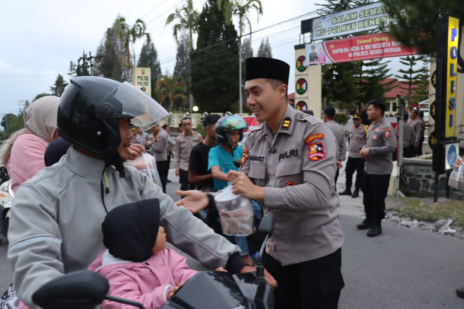 Dengan penuh semangat kebersamaan, para mahasiswa bersama personel Polres Bener Meriah membagikan takjil kepada masyarakat dan pengendara yang melintas. Kegiatan ini tidak hanya menjadi bentuk kepedulian sosial, tetapi juga sebagai sarana memperkuat nilai keimanan dan kedekatan Polri dengan masyarakat di bulan suci Ramadan.