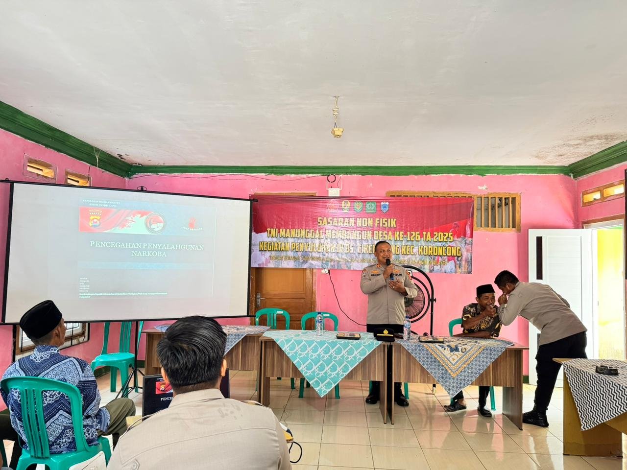 “Keamanan bukan hanya tanggung jawab aparat kepolisian atau TNI, namun menjadi tanggung jawab bersama seluruh elemen masyarakat. Jika warga berperan aktif dalam melaporkan setiap kejadian yang mencurigakan, maka potensi gangguan keamanan dapat dicegah sejak dini. ”Ujarnya di hadapan para peserta penyuluhan yang terdiri dari Tokoh Masyarakat, Aparat Desa, serta warga sekitar.