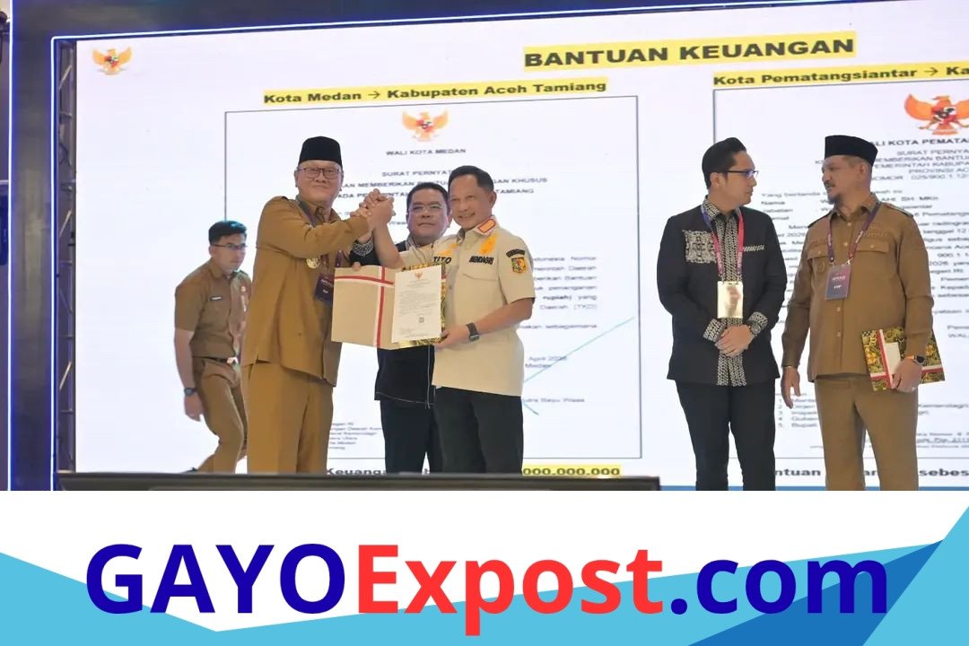 Bantuan Keuangan Khusus ini diterima langsung oleh Bupati Bener Meriah, Ir. H. Tagore Abubakar dari Wali Kota Pematangsiantar, Provinsi Sumatera Utara, Wesly Silalahi yang disaksikan langsung oleh Menteri Dalam Negeri Republik Indonesia, Jenderal Polisi (Purn) Prof. Drs. H. Muhammad Tito Karnavian, M.A., Ph.D di Banda Aceh, Senin (20-04-2026).