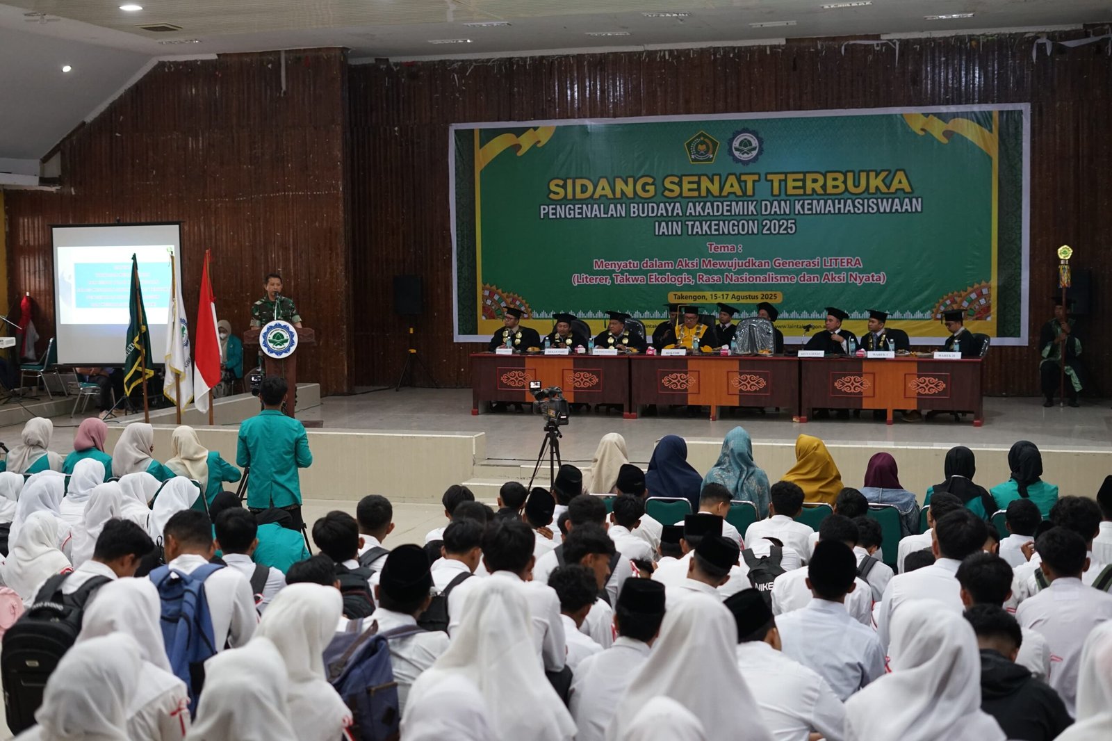 TAKENGON (GAYOExpost.com) – Komandan Kodim 0106/Aceh Tengah, Letkol Inf Raden Herman Sasmita, memberikan pembekalan wawasan kebangsaan kepada mahasiswa baru Institut Agama Islam Negeri (IAIN) Takengon. Kegiatan ini mengusung tema “Menyatukan dalam Aksi Mewujudkan Generasi Literer, Takwa Ekologis, Rasa Nasionalisme, dan Aksi Nyata”, yang digelar di Gedung Olah Seni (GOS) Kampung Blang Kolak I, Kecamatan Bebesen, Kabupaten Aceh Tengah, Jumat (15/8/2025).