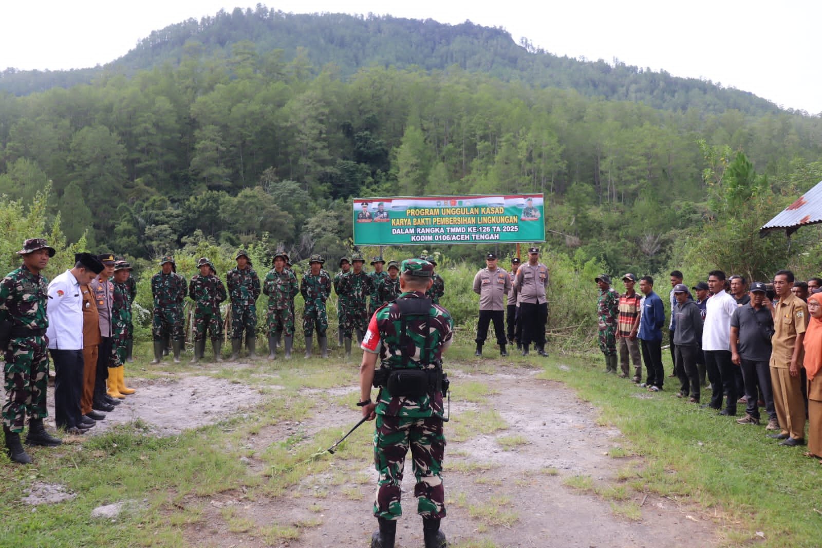 TAKENGON (GAYOExpost.com)-Komandan Satuan Tugas (Dansatgas) TNI Manunggal Membangun Desa (TMMD) ke-126 Kodim 0106/Aceh Tengah, Letkol Inf Raden Herman Sasmita, memimpin apel pembersihan lokasi makam Datu Merah Mege di Kute Keramil, Kecamatan Linge, Kabupaten Aceh Tengah, pada Senin (4/11/2025).
