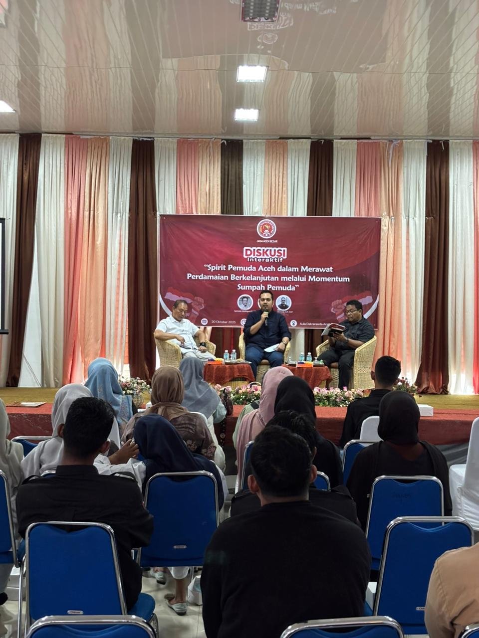 Mengusung tema “Spirit Pemuda Aceh dalam Merawat Perdamaian Berkelanjutan melalui Momentum Sumpah Pemuda”, JASA Aceh Besar sengaja menggelar diskusi ini di akhir bulan Oktober untuk menumbuhkan semangat peringatan Sumpah Pemuda.