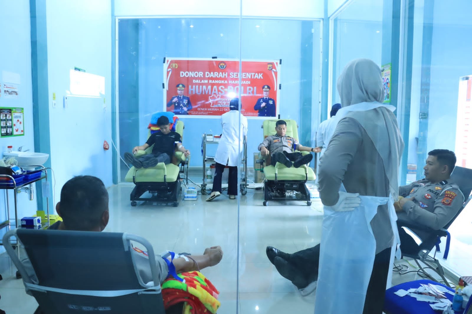 Kompol Syabirin menyampaikan bahwa kegiatan donor darah ini merupakan bentuk kepedulian Polri terhadap sesama serta wujud nyata semangat humanis yang diusung dalam tema HUT Humas Polri tahun ini.
