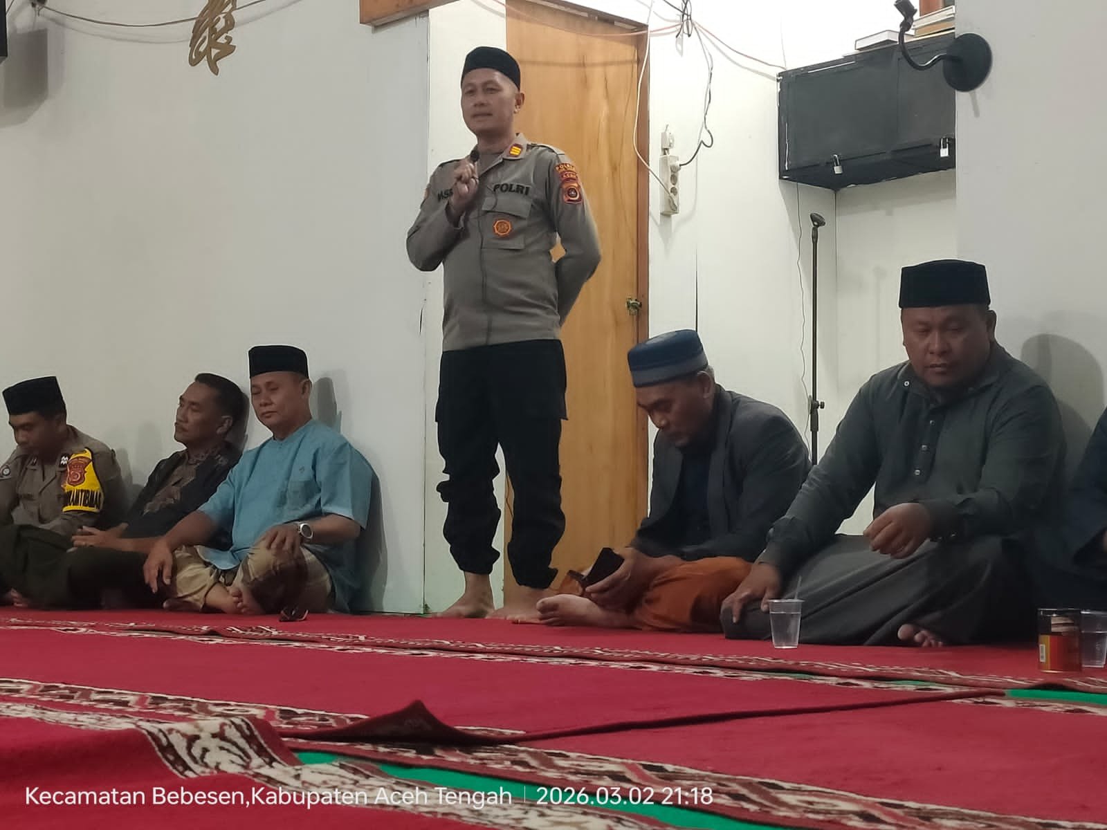 Aceh Tengah (GAYOExpost.com)– Dalam rangka mempererat silaturahmi sekaligus menyampaikan pesan keamanan dan ketertiban masyarakat (kamtibmas) selama bulan suci Ramadan 1447 H/2026 M, jajaran Polsek Bebesen melaksanakan kegiatan Safari Ramadan, Senin (2/3/2026) malam.