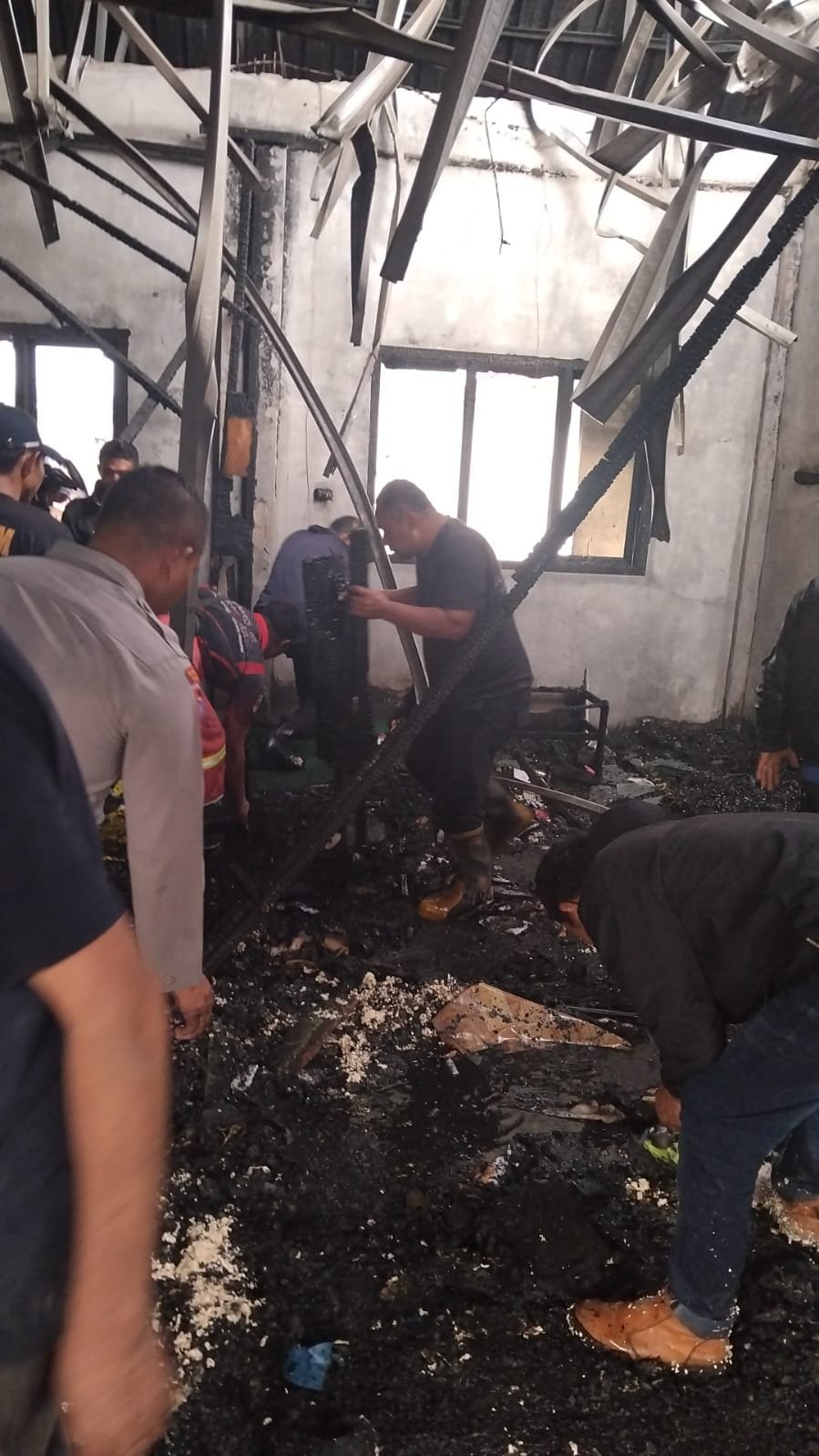 Dok:BPBD :Tampak Tim BPBD, Polisi, Warga serta santri. Membersihkan sisa kebakaran.