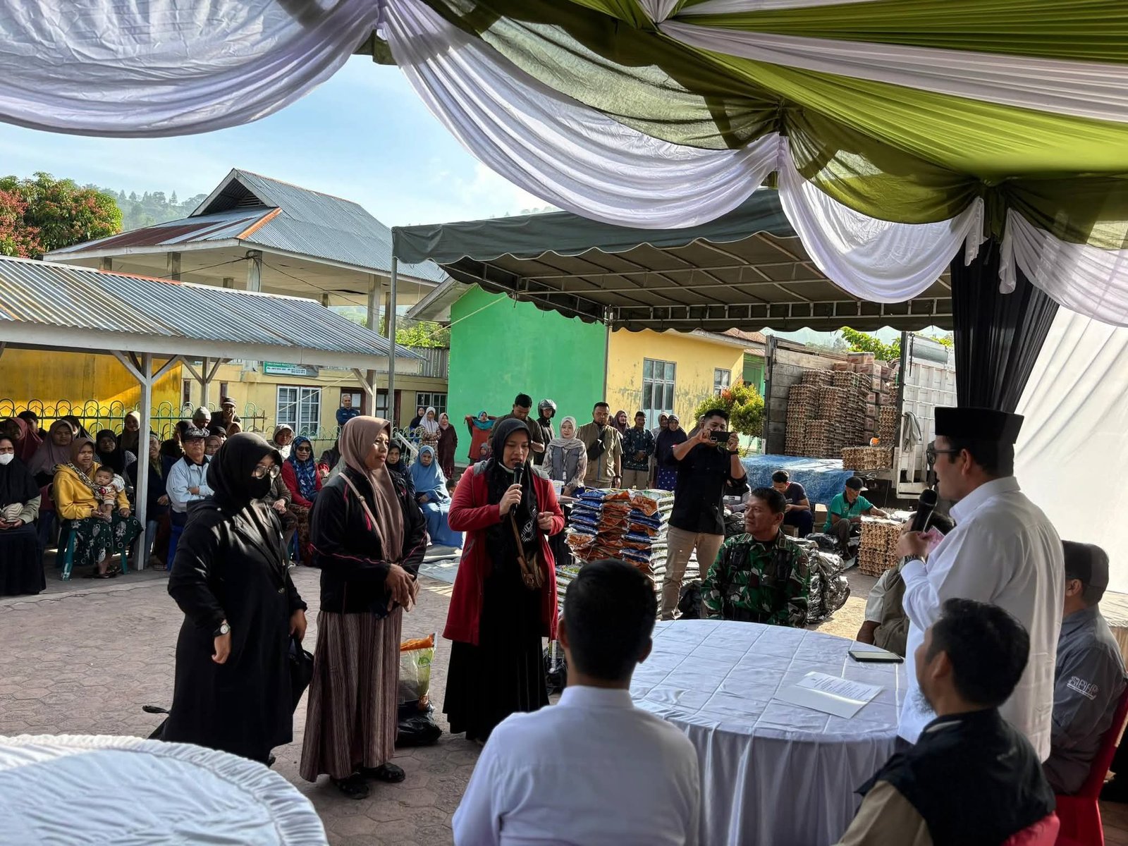 “Dan ini sebuah kebahagiaan bahwa pemerintah hadir di tengah-tengah masyarakat. Dalam bulan yang baik ini jangan lupa meninggal shalat, terus meningkatkan ibadah gemar membaca Al-Quran”, sambungnya.