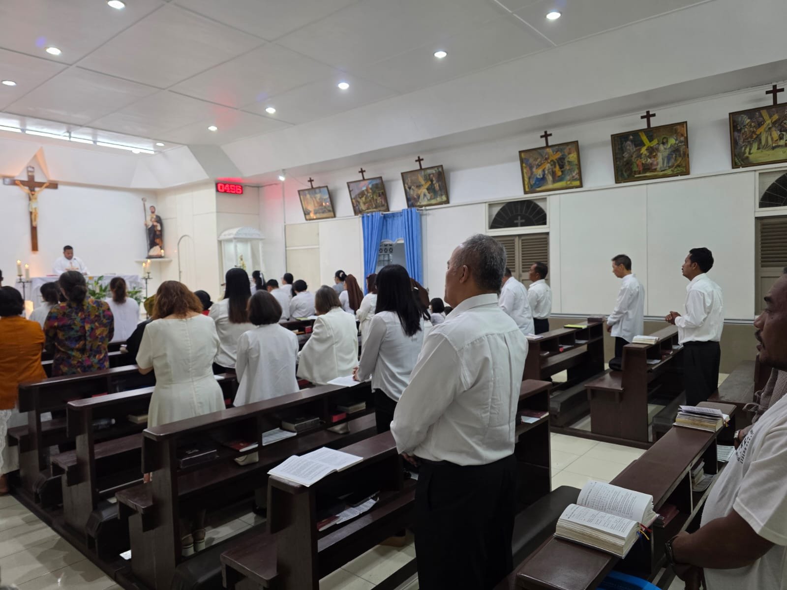 Ibadah yang dimulai sekitar pukul 20.00 WIB tersebut mengusung tema “Jalan Salib” dan dipimpin oleh Pastor Agustinus Padang, OCD. Kegiatan berlangsung khidmat dan diikuti sekitar 30 jemaat.