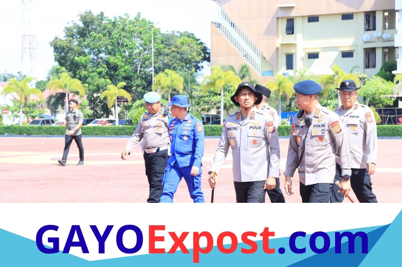 Kegiatan yang berlangsung di Lapangan Mapolda Aceh, Kamis (30/4), melibatkan ratusan personel gabungan dari Polda Aceh dan Polresta Banda Aceh, serta disaksikan langsung oleh Kapolda Aceh Irjen Pol. Drs. Marzuki Ali Basyah, M.M, didampingi Wakapolda dan para Pejabat Utama Polda Aceh.