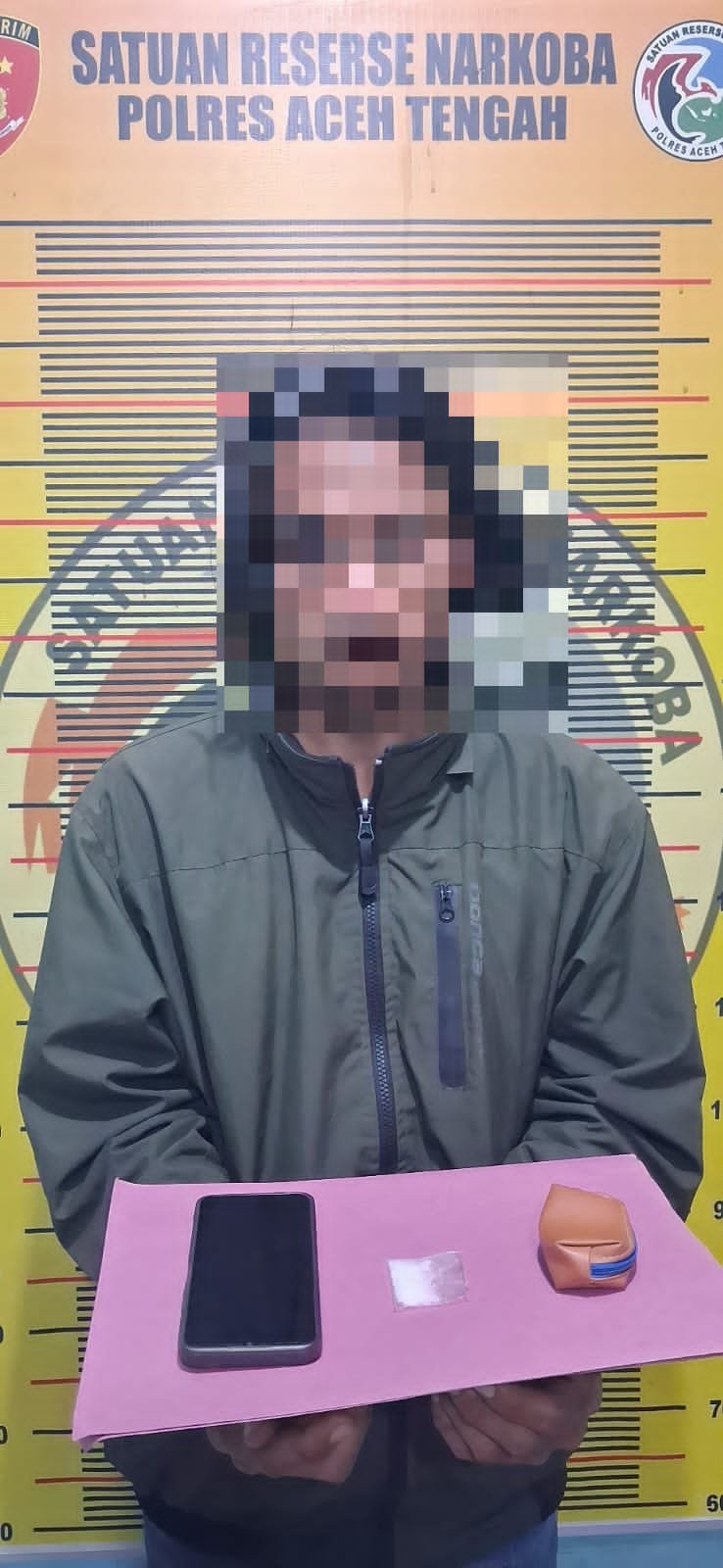 Kapolres Aceh Tengah AKBP Muhamad Taufiq, S.I.K., M.H. melalui Kasat Resnarkoba AKP Fakhrurrazi, S.Si., MSM., menjelaskan bahwa dari tangan pelaku diamankan sejumlah barang bukti, di antaranya satu paket yang diduga sabu dengan berat bruto 2,13 gram, satu unit telepon genggam, tas selempang hitam, serta dompet berwarna cokelat.