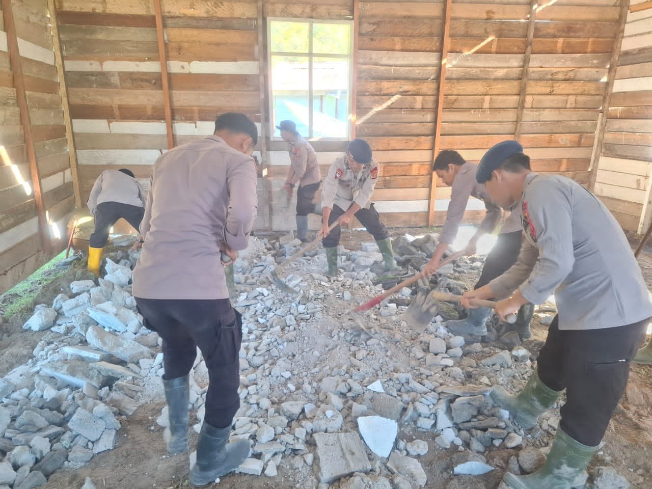 Polri Hadir Pulihkan Rumah Ibadah, Polsek Silih Nara dan Brimob Gotong Royong Bangun Meunasah