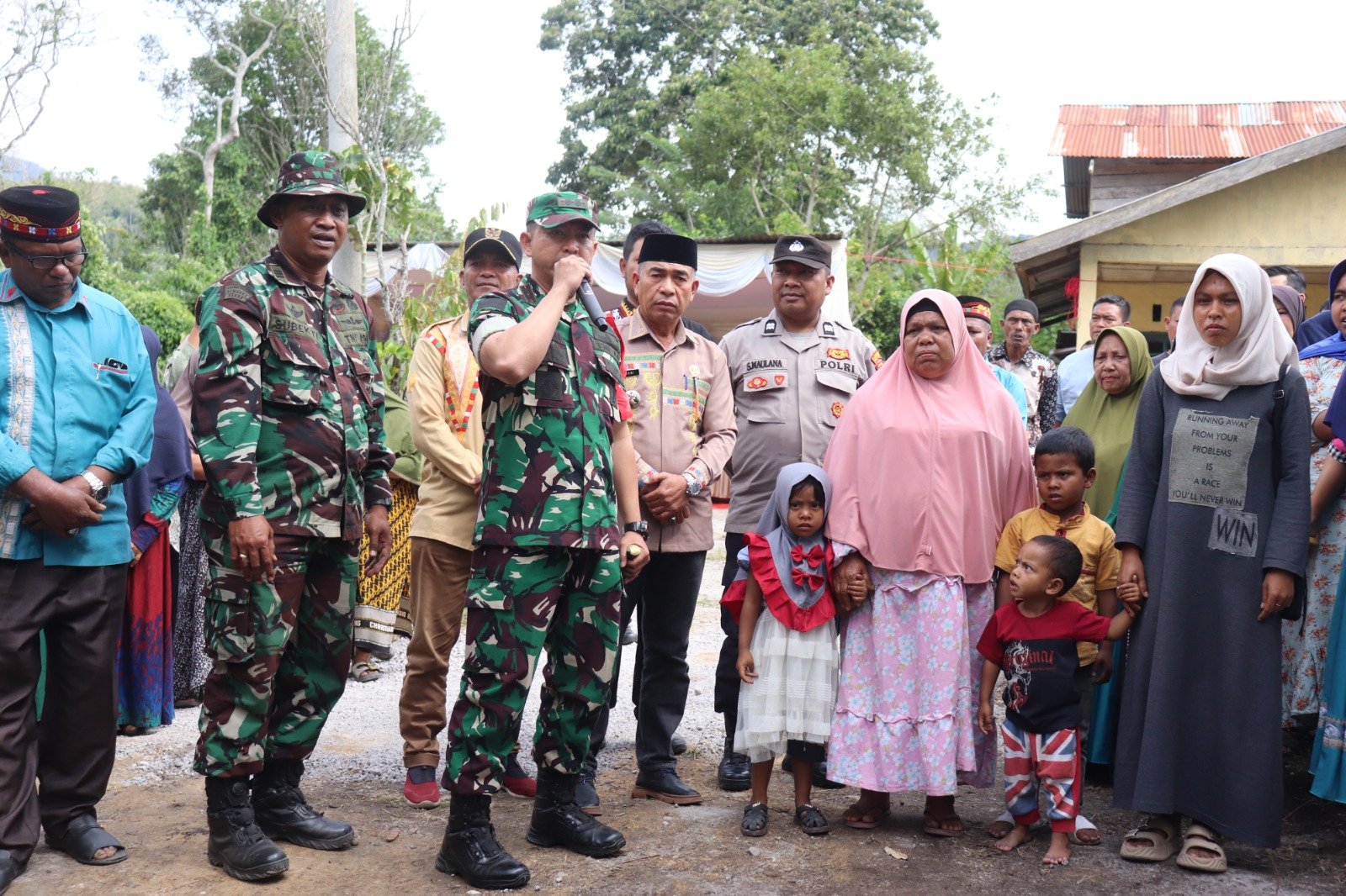 Penerima manfaat program, Ibu Kasmawati, menyampaikan terima kasih kepada Dandim dan seluruh personel yang telah membantu pembangunan rumah tersebut hingga selesai dengan baik.
