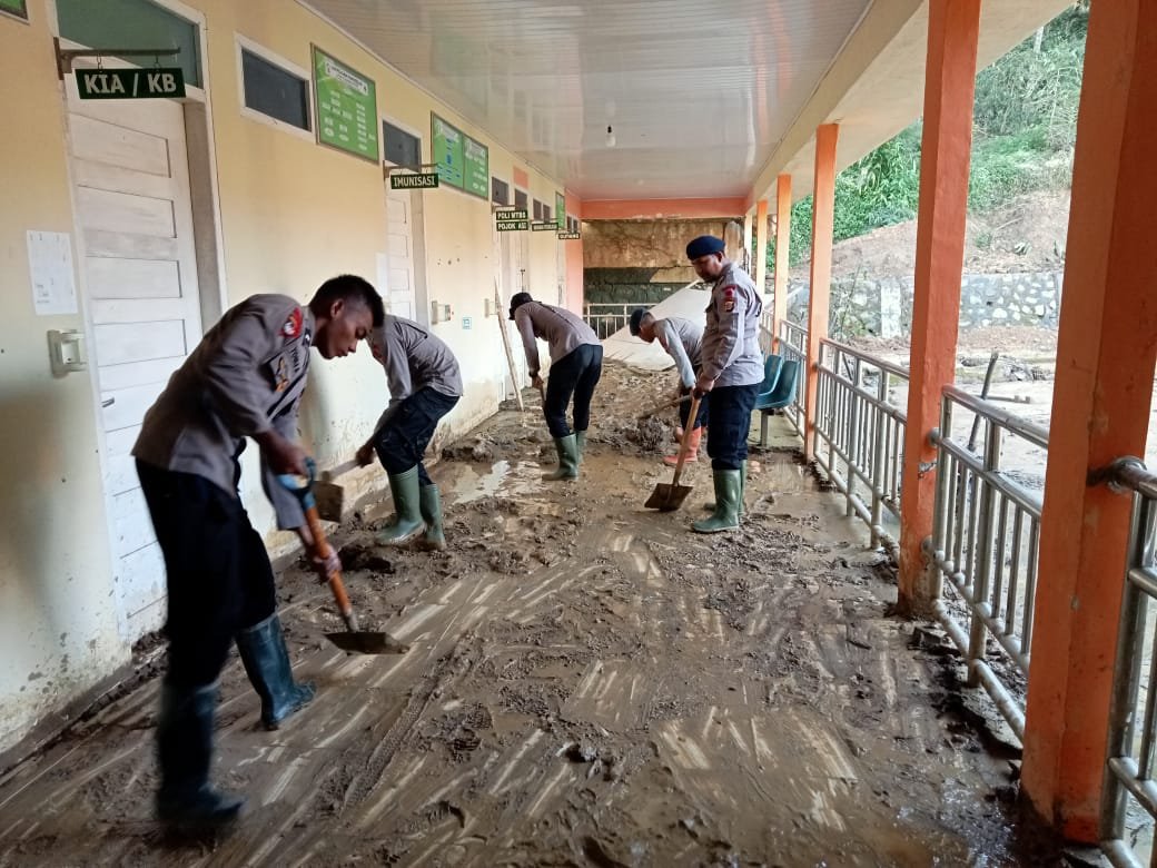 Pulihkan Harapan, Polisi dan Brimob Bersihkan Puskesmas Rusip Antara Pascabencana