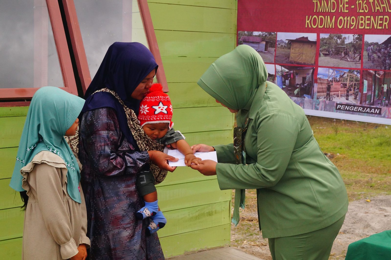 Dalam kesempatan tersebut, Ny. Rima menyampaikan bahwa pemberian tali asih merupakan bentuk kepedulian dan kasih sayang Ibu Ketua Persit PD Iskandar Muda kepada masyarakat yang telah menerima manfaat RTLH hasil pembangunan Satgas TMMD Reguler ke-126.