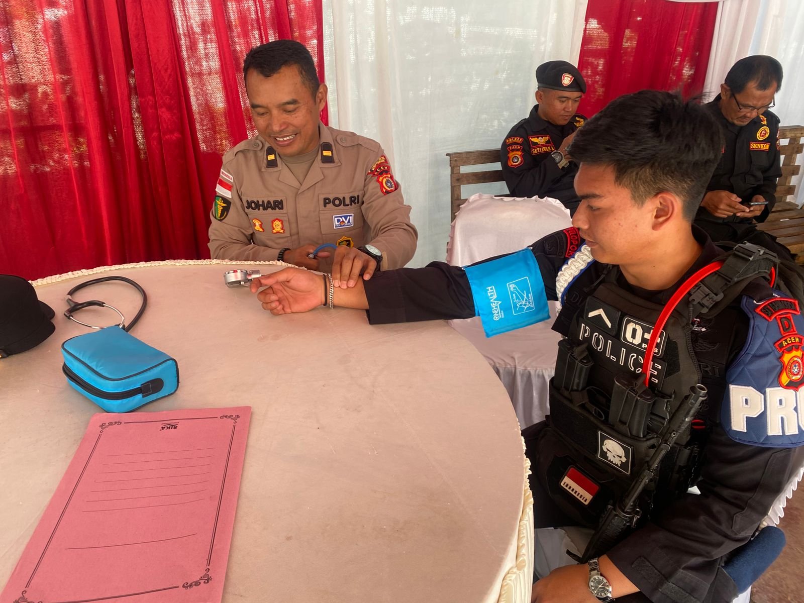 Kegiatan ini dipimpin langsung oleh Kasi Dokkes Polres Aceh Tengah Ipda Johariyadi bersama personel Sidokkes dengan melakukan pemeriksaan kondisi kesehatan terhadap personel yang bertugas di pos pelayanan maupun pos pengamanan.