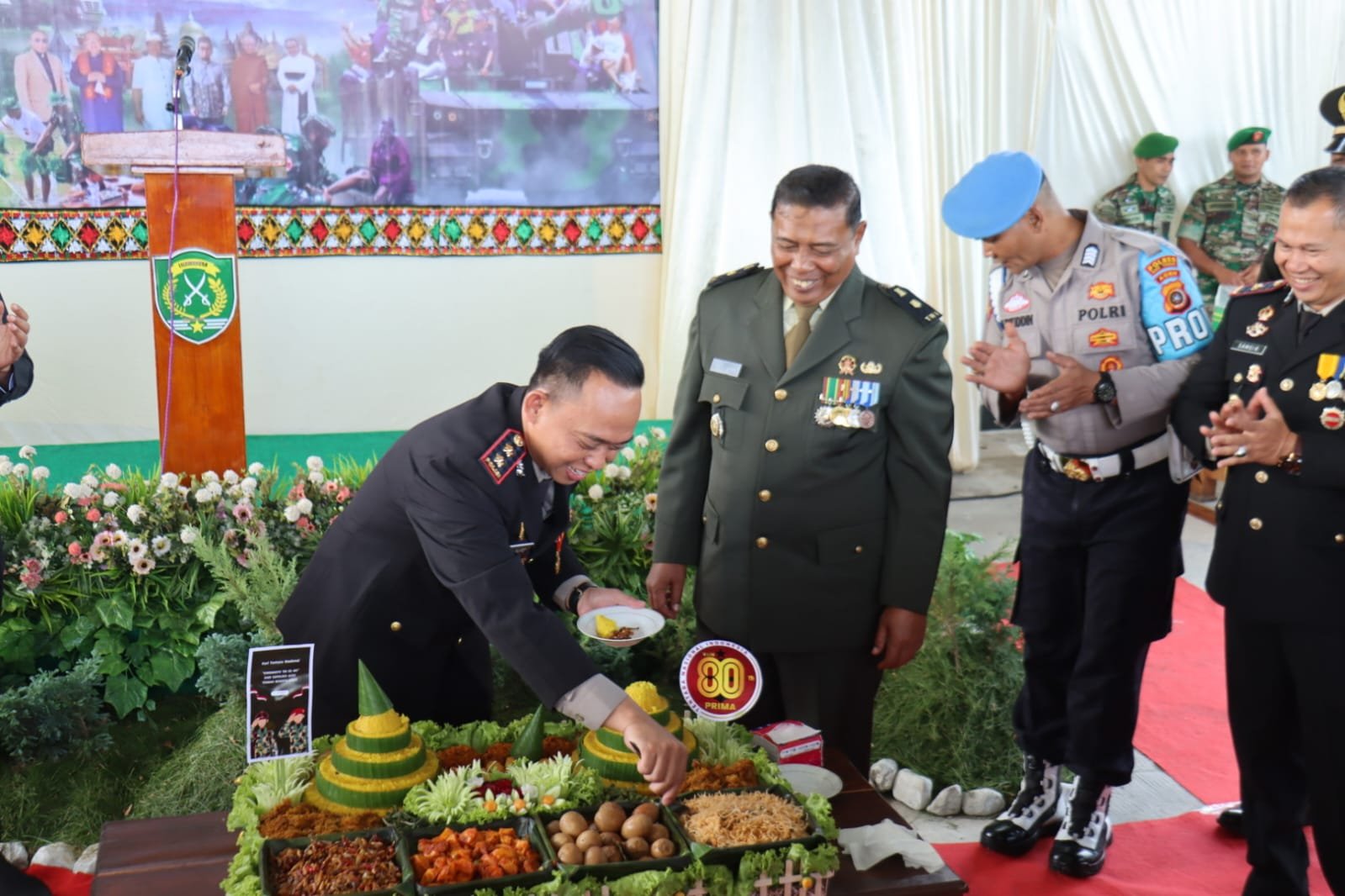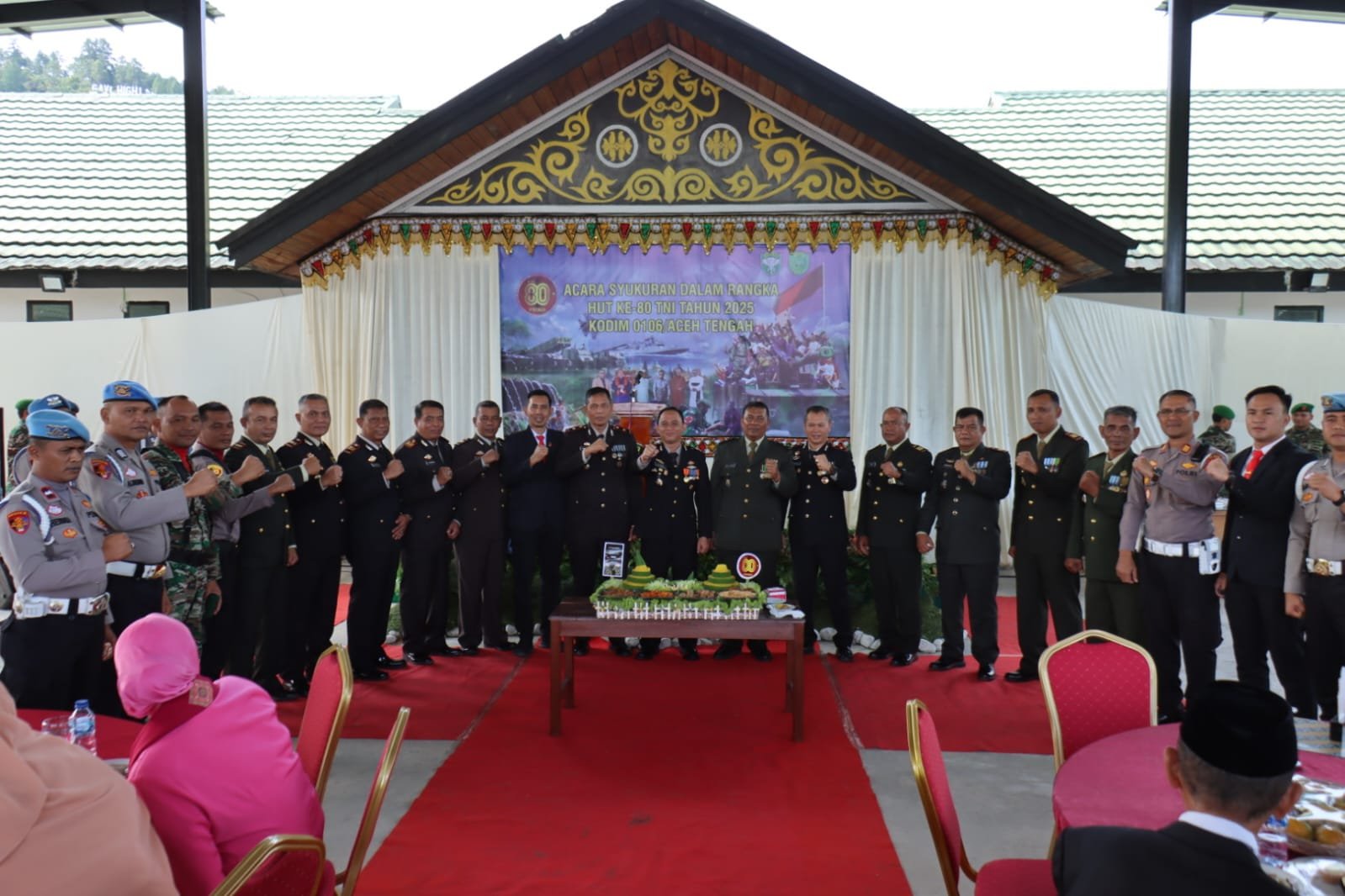 Usai upacara, suasana haru dan kekeluargaan semakin terasa ketika Kapolres bersama pejabat utama Polres Aceh Tengah menyerahkan nasi tumpeng dan secara simbolis menyuapi Kasdim 0106/Aceh Tengah. Aksi spontan tersebut disambut tepuk tangan peserta upacara, menggambarkan keakraban yang tulus antara dua institusi penjaga negeri.