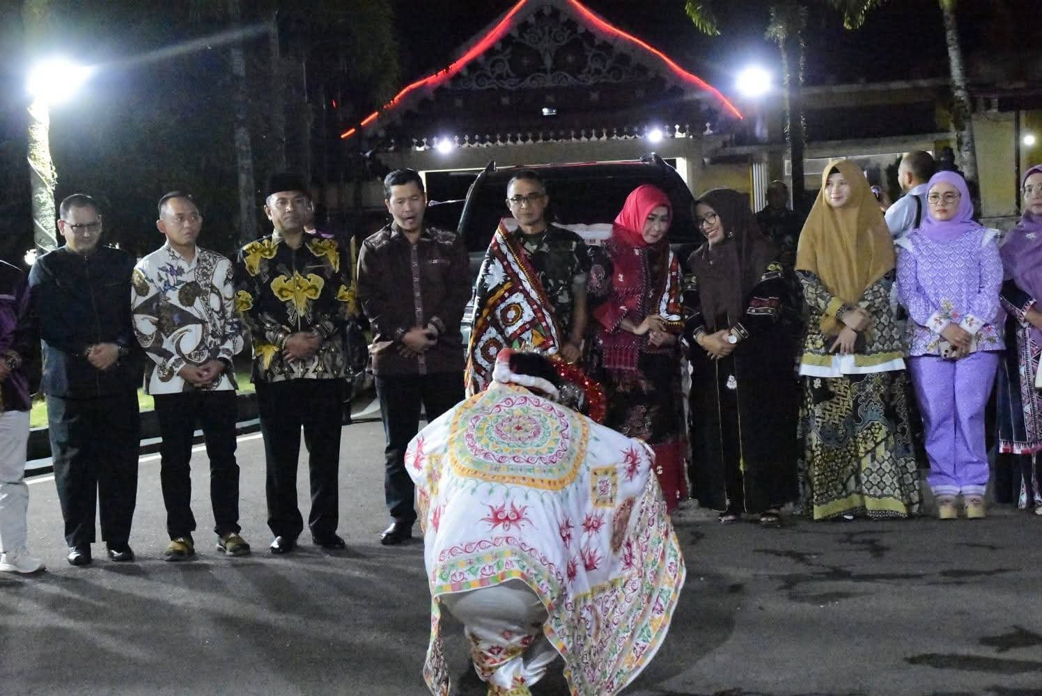 Kehadirannya disambut hangat dengan prosesi adat Gayo melalui Tari Munalo dan penyematan Upuh Ulen-Ulen di Pendopo Bupati Aceh Tengah, Selasa malam (04/11/2025).