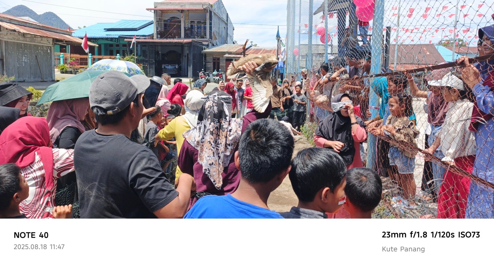 Pantauan GAYOExpost.com, meski perayaan tidak dilakukan secara megah, namun suasana terlihat penuh keceriaan. Di lapangan sederhana yang dihiasi umbul-umbul merah putih serta balon warna-warni, masyarakat berkumpul untuk menyaksikan dan ikut serta dalam lomba memancing botol, makan kerupuk, balap kelereng, hingga permainan khas 17 Agustus lainnya.