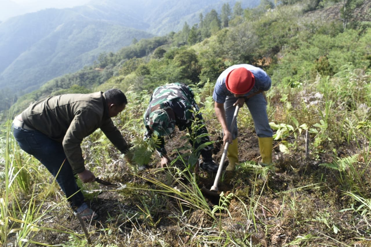 Foto:Wujud Peduli Lingkungan, Satgas TMMD ke-126 Tanam Ratusan Pohon di Desa Reje Guru. (Ist)